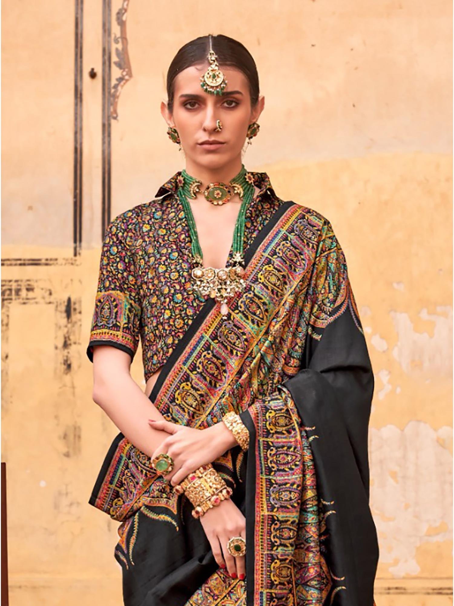 Poly Viscose Silk Pashmina Saree(Black)