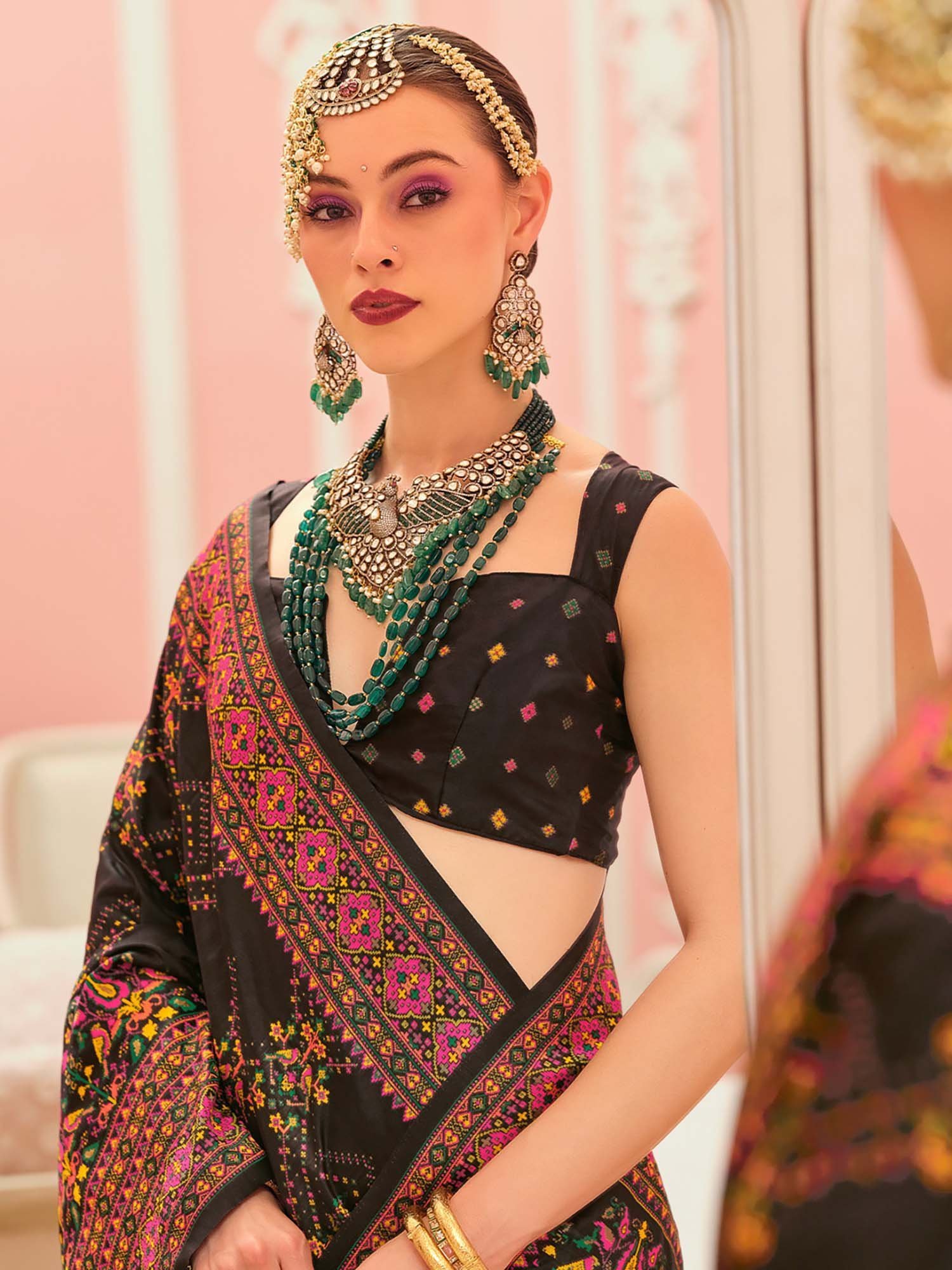 Womens Silk Blend Black Woven Design Saree with Unstitched Blouse